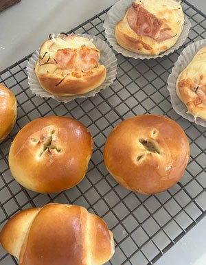 ジャーマンポテトを包んだポテトパンとハムチーズとロールパンを作りました~。