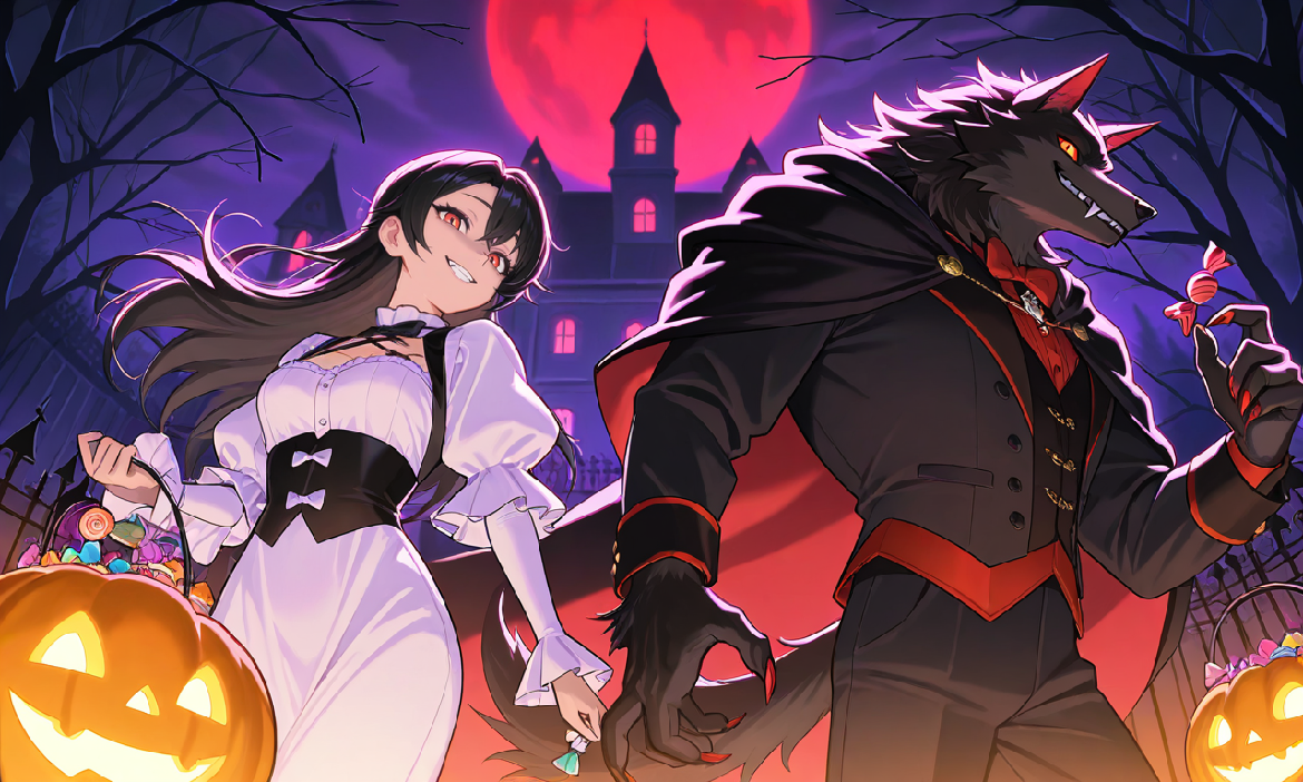 仲良しの夢月みつき様から、AIのハロウィンイラストをいくつか頂きましたッ。