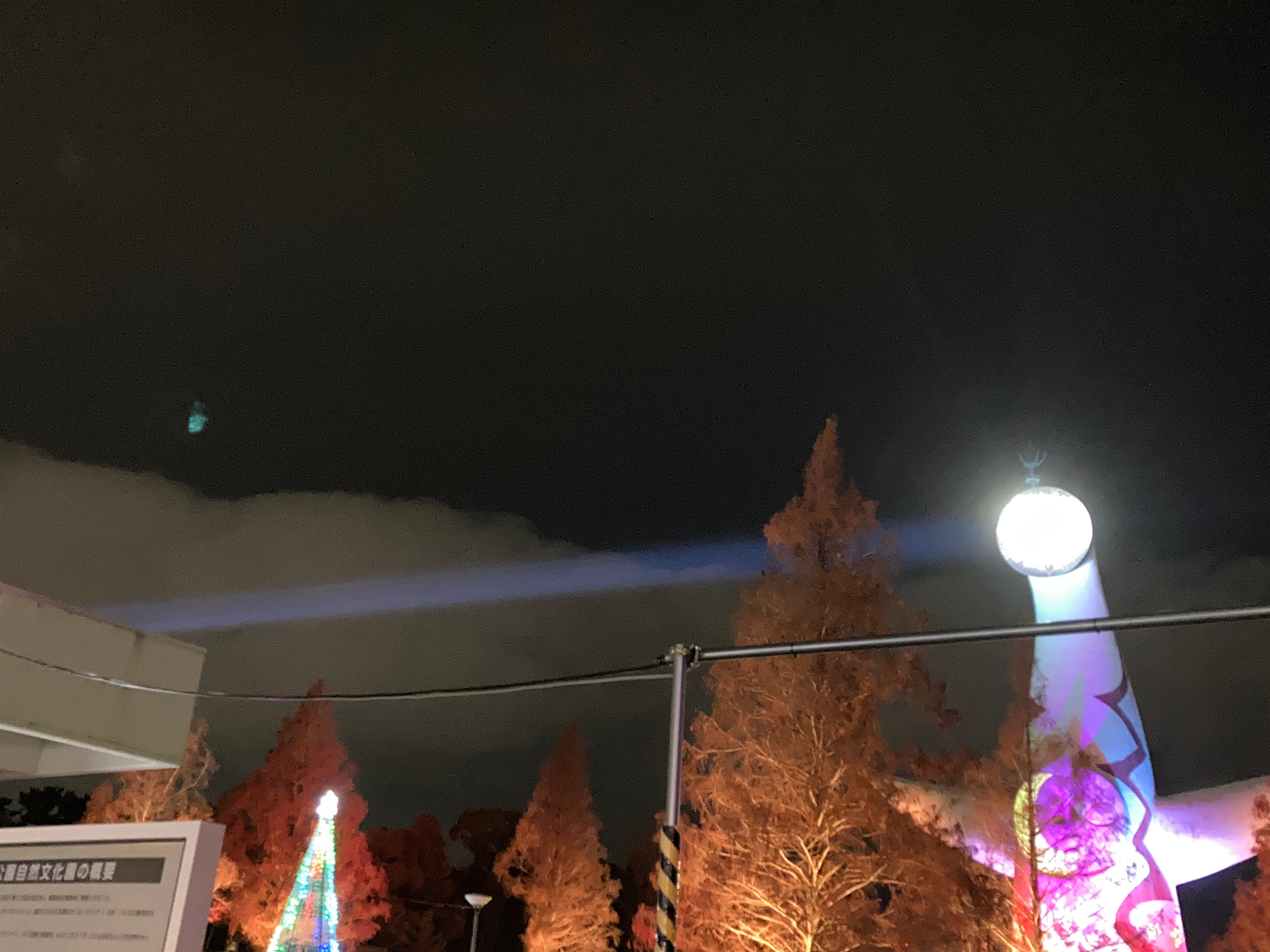 禍々しいライトアップがされ、まるで邪神像が都市を焼き尽くすかのごとく、レーザーを発しておりました。