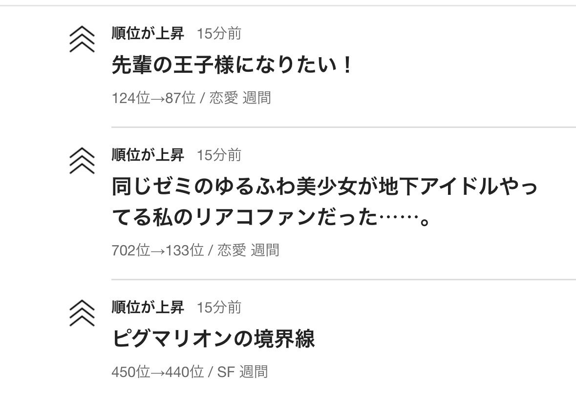 とくに真ん中の作品は恋愛週間87位に上がりました↓