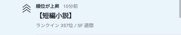 先日書いていただいたレビューのおかげでしょうね。【短編小説】のランキング通知が来ていました。誠にありがとうございます。