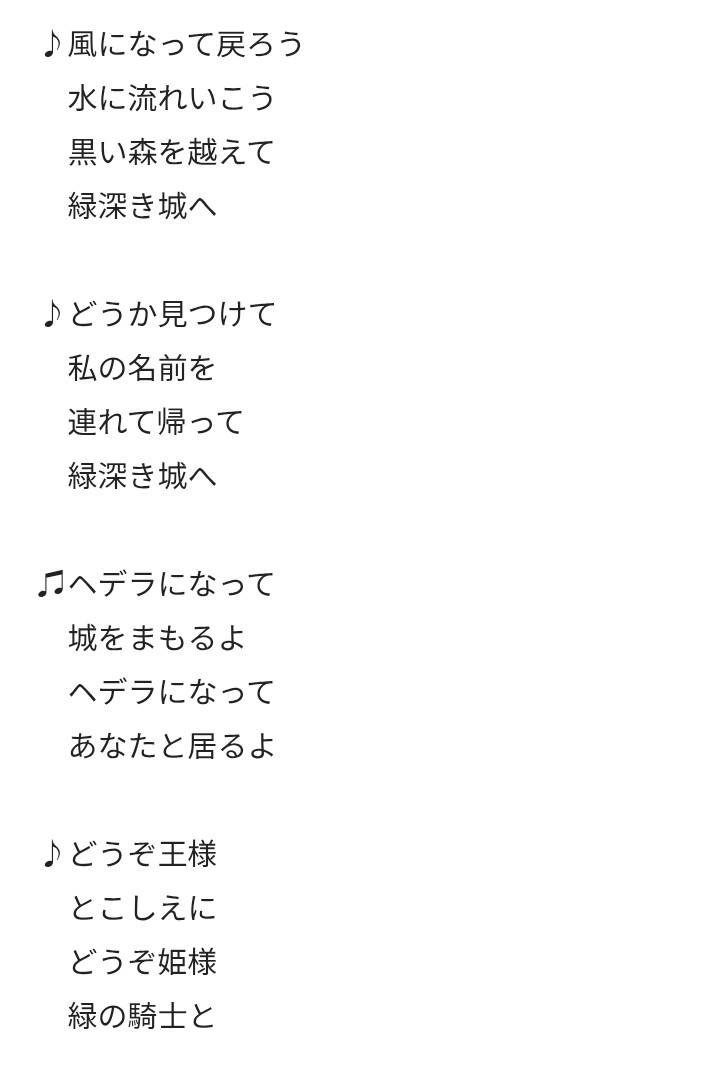 作中に歌を出して、歌詞も出しました。音楽的なことは何もわからないので、多分二ブロック目が字数合わなくて、歌えない気がします💦