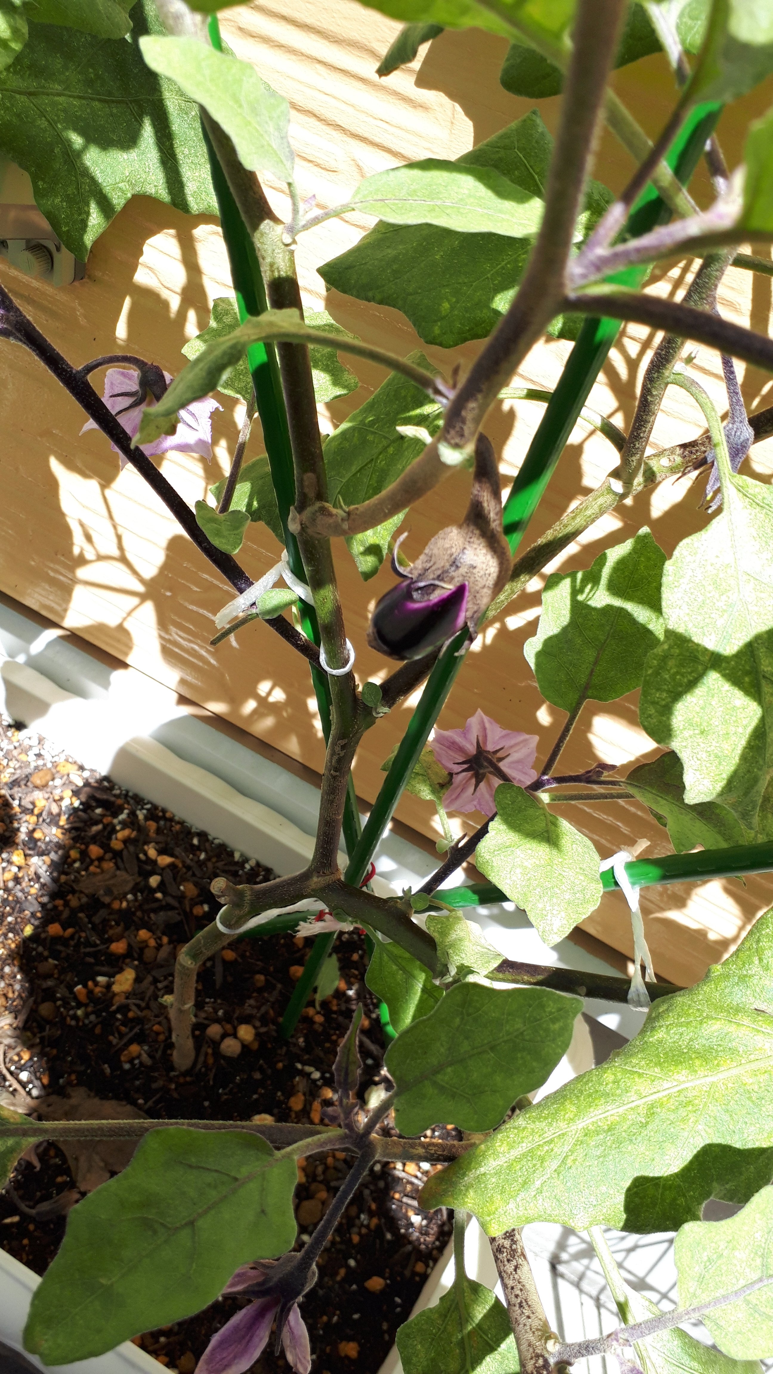 うちのナス姉妹にとうとう実らしきものが……。