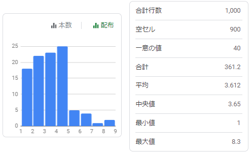 ◆分布的には、4~5に最も集中しており、5以上はわずか12件