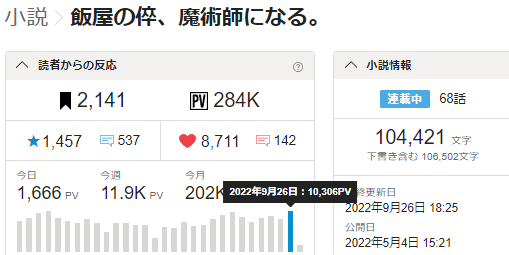 >昨日のPVは10kを超えていましたが、週間順位には結びつかず! 巻き返しを図ります!