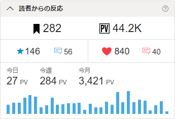 ※カクヨム運営のデータ更新タイミングとは一致していないため、日ごとに若干のずれが生じます。(公式な昨日のPVは130PV)