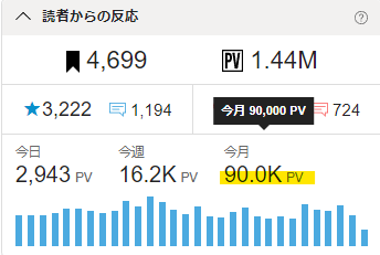 【細かい記録シリーズ】今月のPVが90000を突破!🎉✨ 「🍚🥢飯屋」でね。