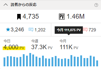 🖋珍しく早い時点で今日のPV4000超えました。📈👍
