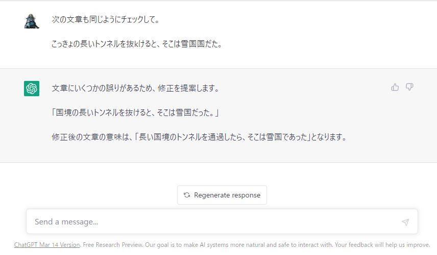 ChatGPTで文章校正。このくらいやってくれると、頼めるかも。
