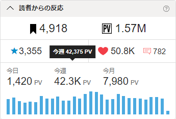 ①今週のPV数:42kPV突破!🎉✨(週平均6k/日を確保)
