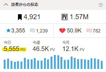 🖋今日のPVが「5555」を突破しました! ご愛読ありがとうございます。🙇