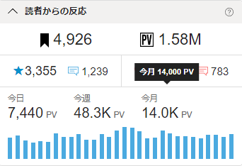 📢【細かい記録シリーズ】今月のPVが14.0kPVに! おっと、「🍚🥢飯屋」でした。