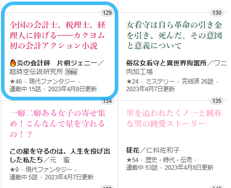 ランキング:135位→129位。😃