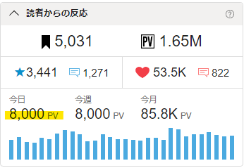 🖋本日のPVが8000PVに到達しました!🎉✨
