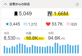 🖋ついでに今週のPVが16kPVを突破!🎉✨ (2日平均8kPV以上を確保)