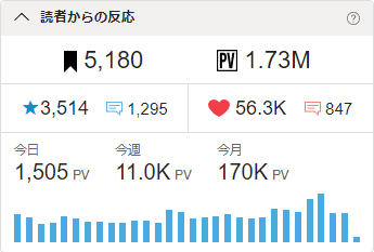 ①累計PV数:1.73MPV突破!🎉✨
