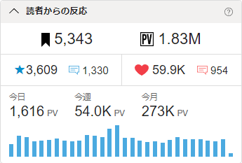 ①累計PV数:1.84MPV突破!🎉✨ (4/30分だけどおまけ)