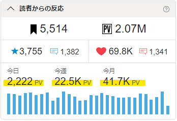🖋今週のPVが22.5kを突破!🎉✨ (5日平均で4.5kPV/日を確保済み!)