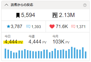 →月曜日ですけど、7kPVくらい行けるでしょうか? 期待せず、待ちましょう。