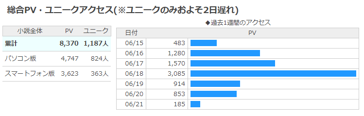 6/18の07:00に完結したので、その日に「完結ブースト」とやらが発生しているようです。細々と。💧