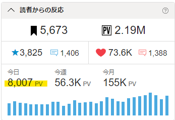 🖋今日のPVが8kPVを突破!🎉✨ 1週間の終わりを飾ったという感じ。