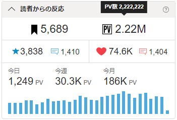 🖋ほぼ08:00ちょうど。累計PVが2,222,222PVに到達しました!🎉✨