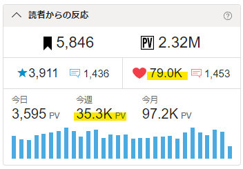 🖋今週のPVが35kを突破!🎉✨ 5日平均で7kPV/日をクリア!👍