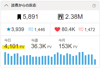 👀本日は17:30過ぎの時点で4kPVを突破!→苦手の金曜日としては立派。👍