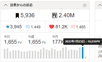 🖋さすが日曜日。昨日は久しぶりに5桁のPV。10,035PVを記録しました!🎉✨