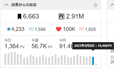 🖋昨日のPVは10466。ギリギリですが10kPVキープです。