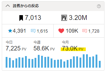 🖋今月のPVが73kを突破!🎉✨ 6日平均で12k/日をクリア済です。👍