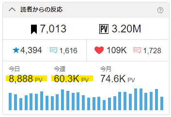 🖋今週のPVは60kを突破!🎉✨ 5日平均で12k/日をクリア済!👍