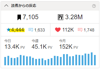 🖋今週のPVは45kを突破!🎉✨ 3日平均で15k/日をクリアしました。👍
