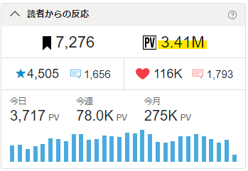 🖋累計PVが3.41Mを突破しました!🎉✨