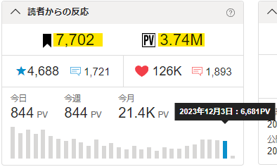 🖋累計PVが3.74Mを突破しました!🎉✨ ありがたし。