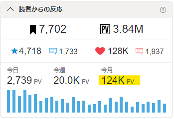 【記録用】今月のPVが124kを超えた「🍚🥢飯屋」。🎉✨