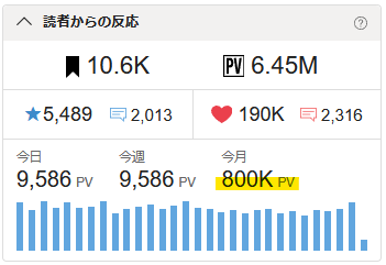 今月のPVが80万を超えた「🍚🥢飯屋」。