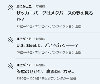 📈総合505位→513位、エッセイ・ノンフィクション47位→46位🆙🎉✨。
