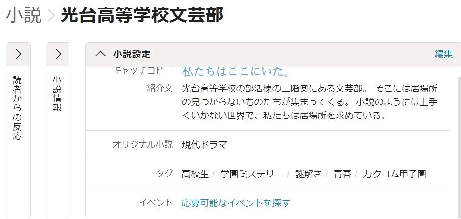 『光台高等学校文芸部』は、良くも悪くも、あの恋をした夏でしか、その人とは対等に並びえない、その人の後ろを歩き欠片を拾うことしかできない、ちっぽけな私でしか書けなかった物語です。