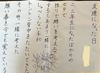 もうすぐ小学校を卒業するイラストを描くのが大好きな孫。本日は、イラストではなくて<詩>です。ずっと校舎の入口に貼られていたものを、返してもらったとか。イラストを描くのが好き、イラストを描きながら物語りを想像するのが好き、そして習字が好き。という三つの好きが上手く融合した作品です。