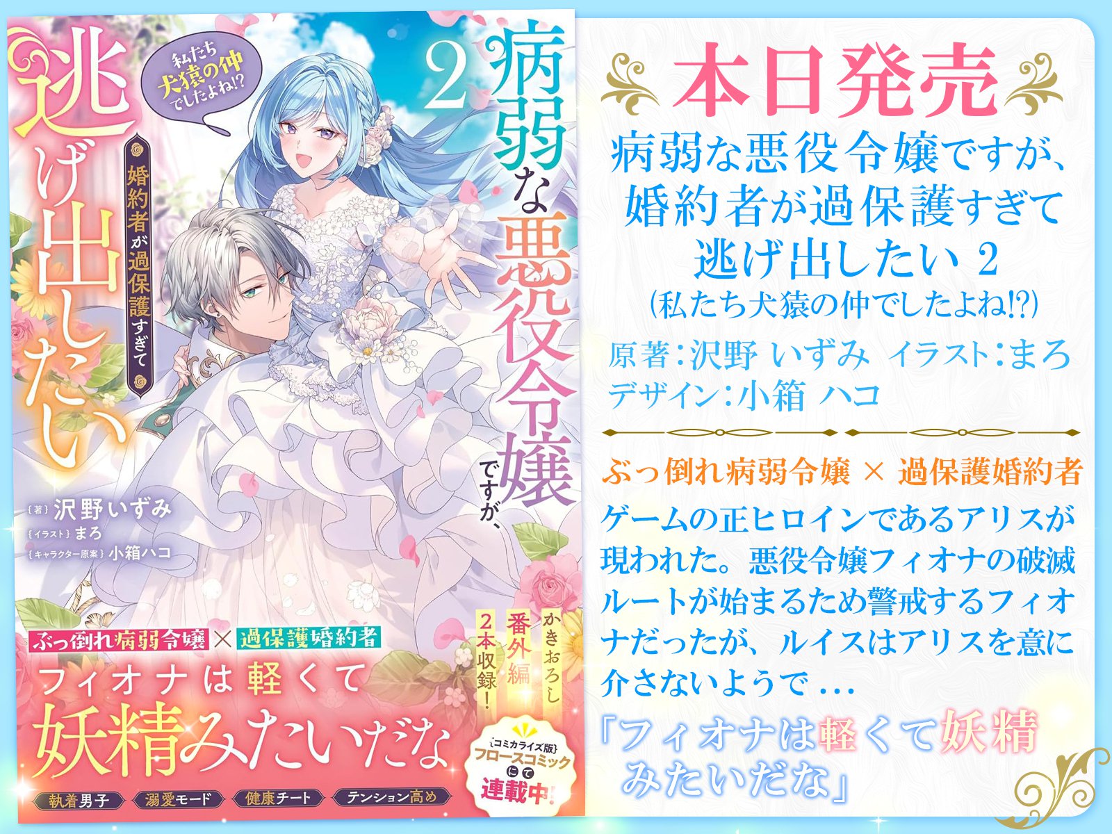 『病弱な悪役令嬢ですが、婚約者が過保護すぎて逃げ出したい(私たち犬猿の仲でしたよね!?)』 小説2巻