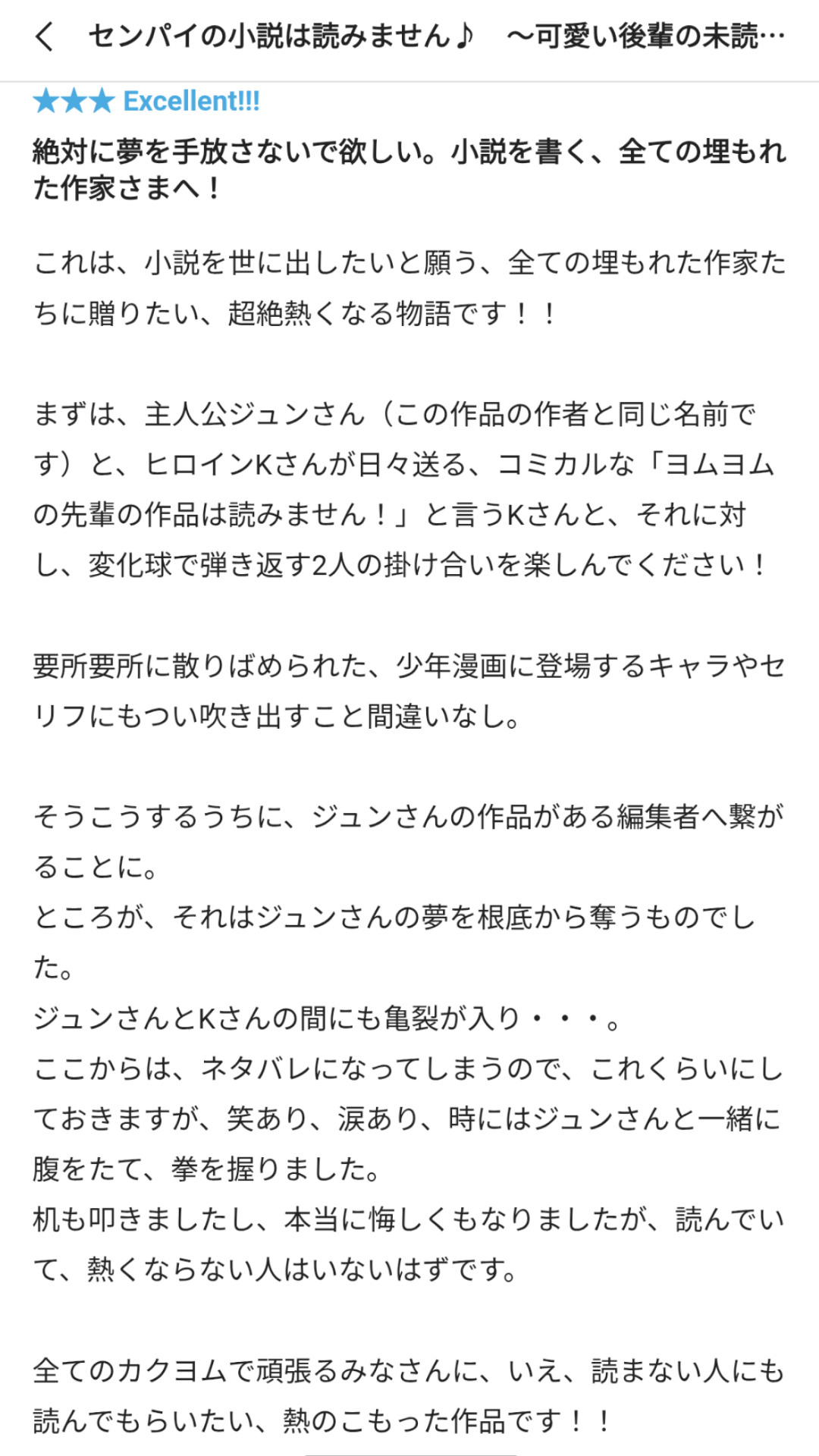 もし途中から、もしくは最初から読者ウケ狙いなら、ここまで熱いご感想は頂けなかったでしょう。
