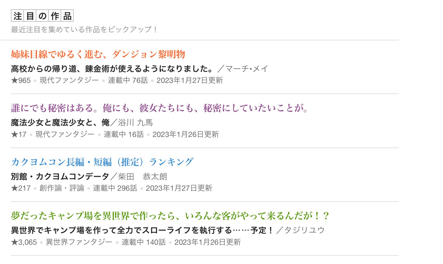 注目の作品の欄に前に紹介させていただいた作品が載っていてびっくりしたぜ