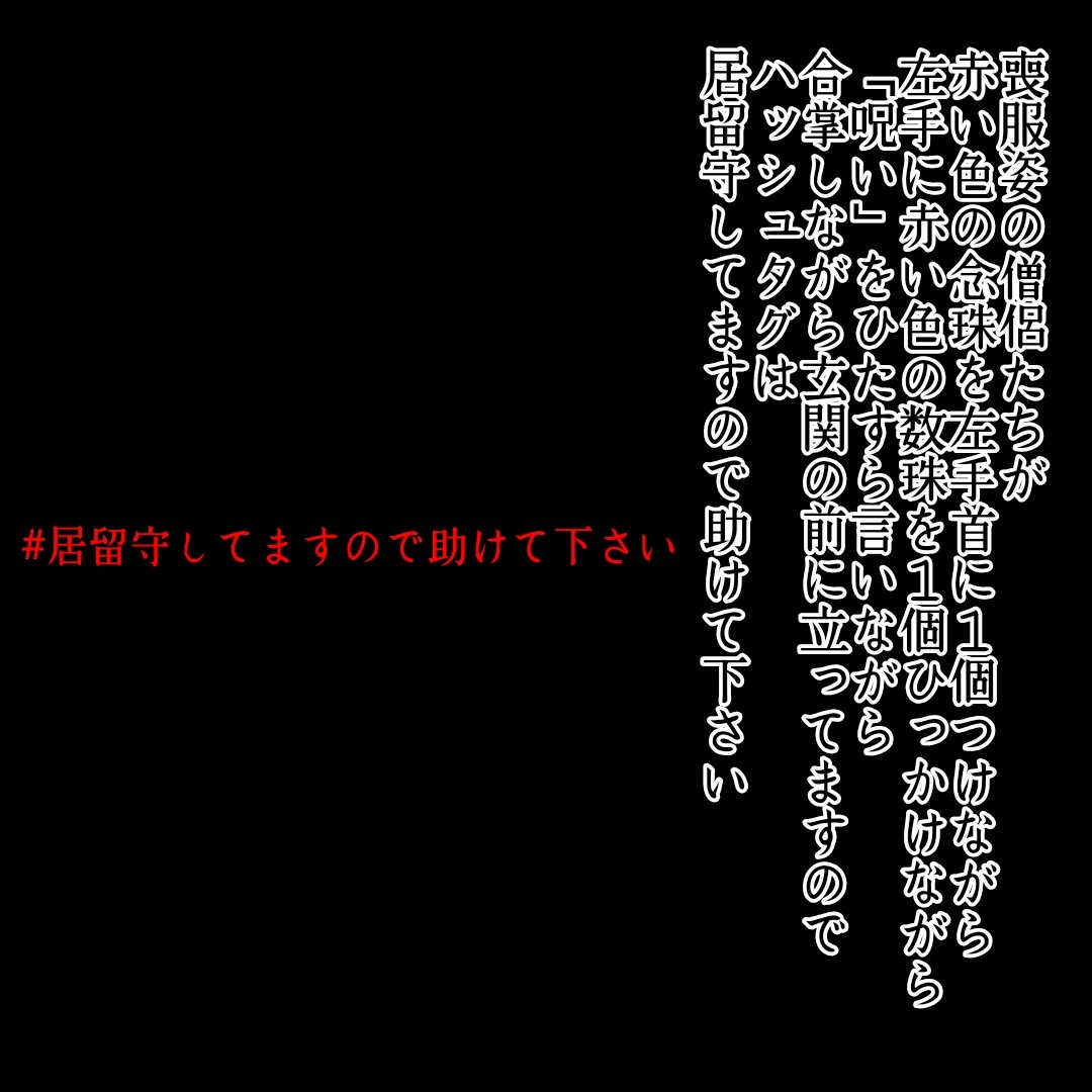 喪服姿の僧侶たちが赤い色の念珠を左手首に1個つけながら左手に赤い色の数珠を1個ひっかけながら「呪い」をひたすら言いながら合掌しながら玄関の前に立ってますのでハッシュタグは居留守してますので助けて下さい
