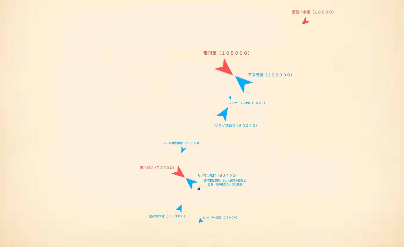 アスラ派と表記していますが、実際はアスラ派を中核とした混成師団。朧月師団もナバスクエス師団をはじめとする他師団が含まれています。