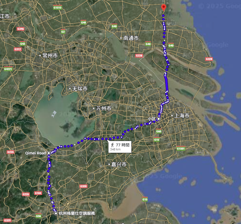 地図にもおよそ348kmと記されていますが、途中で横道に逸れたり迂回したりしているので、400kmほど移動していることになります。