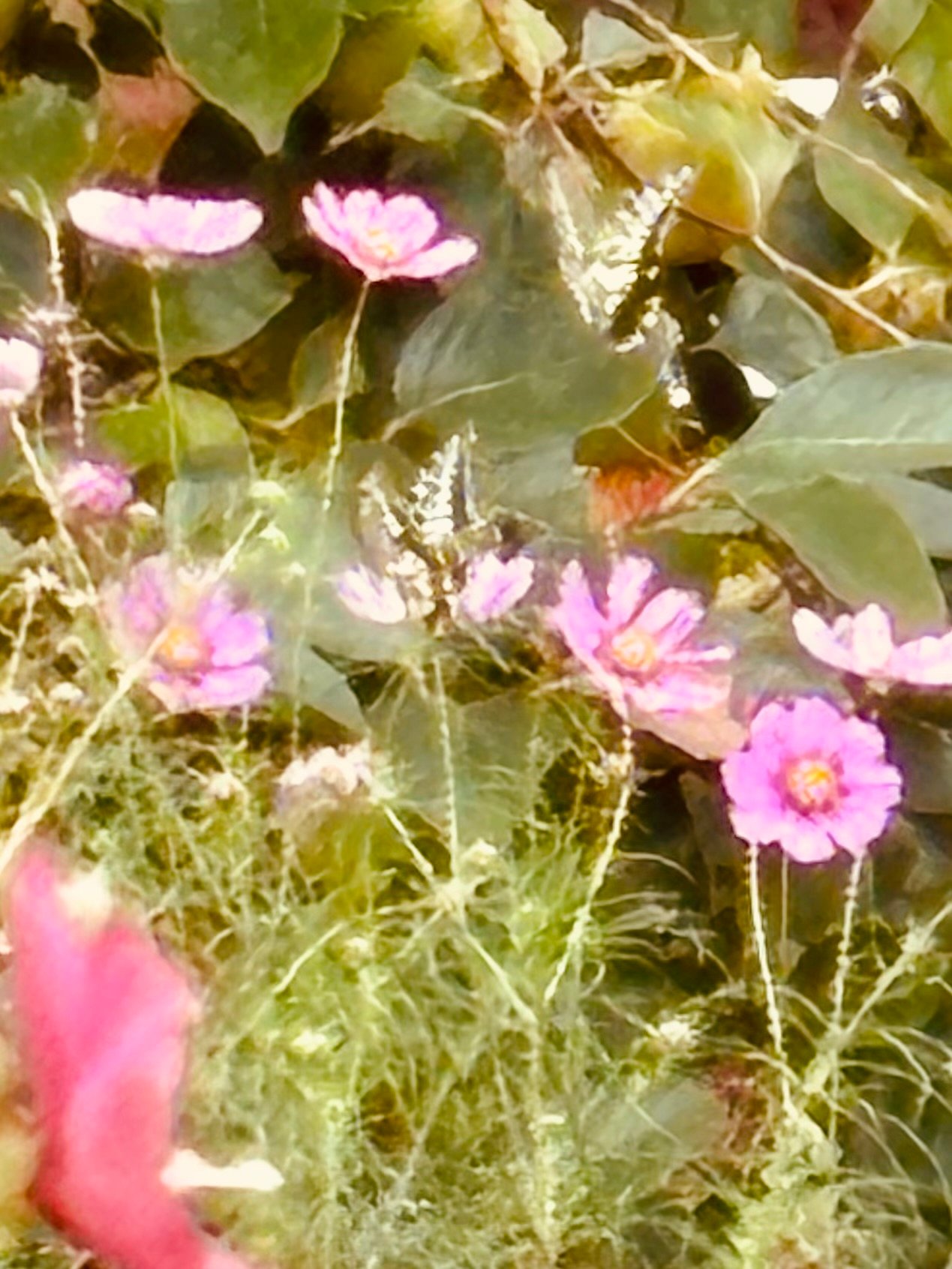 じつは奇跡的に撮れたあの蝶々、最初の一枚は一匹だったのに、そのあともう一匹がやってきたんですよ。ピントはあわせられなかったけど、四枚連射できた(*'v'*)