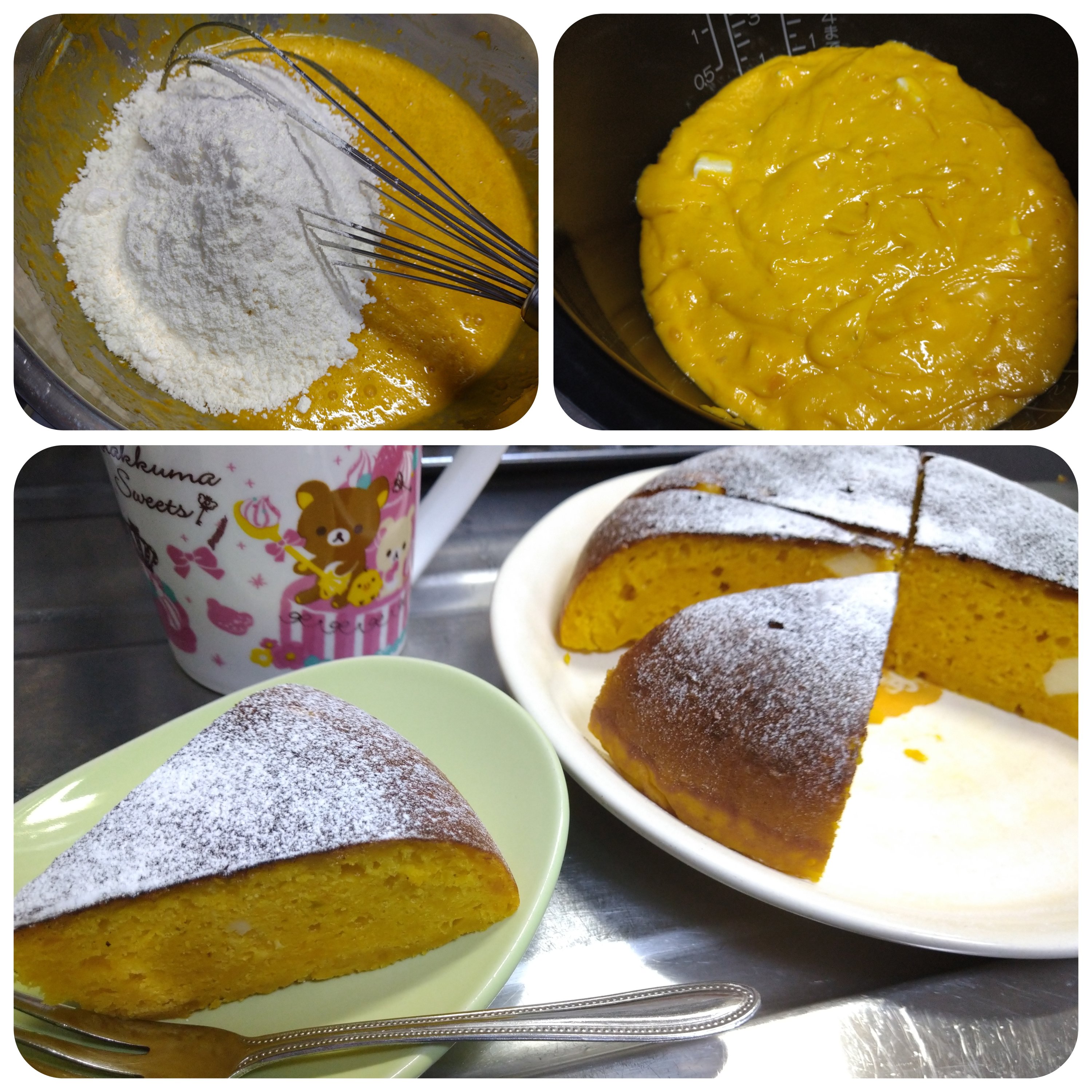 ハロウィンはおわって、飾り付けのカボチャが消えていく米国ですが、カボチャの入ったデザートの時期は未だ続いています。炊飯器で作るチーズケーキ、日本ならではのレシピですよね?