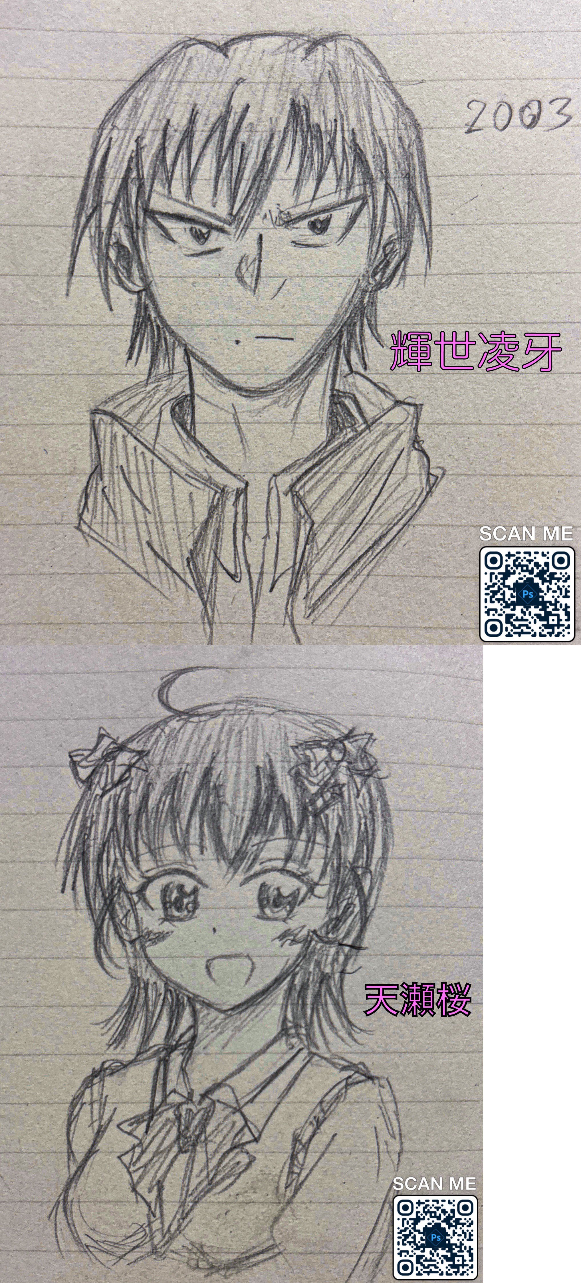 輝世凌牙(2003年)と天瀬桜の顔面イメージを公開しときます!あくまでイメージなので大体こんな感じなんだなぁって思ってもらえたら大丈夫です。まだまだ画力不足なので思うように出力が出来ません😭(凌牙は目つき悪すぎるかもしれません。でも気持ちイカついのは確かです)