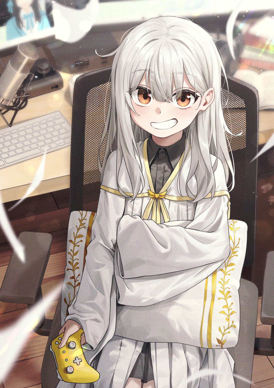 モニターでちゃっかりVTuberの配信を見てたり、机に外国語の教科書が積み重なってたり、羽のように紙が舞っていたり……!?